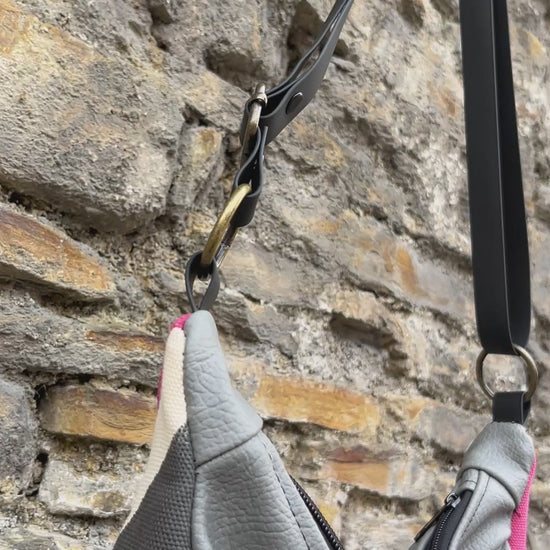 Bolso ilargi está pensado para acompañarte con estilo en tú día a día. Su forma ergonómica se adapta perfectamente al cuerpo y permite llevarlo tanto al hombro como cruzado, gracias a su tira impermeable y regulable.