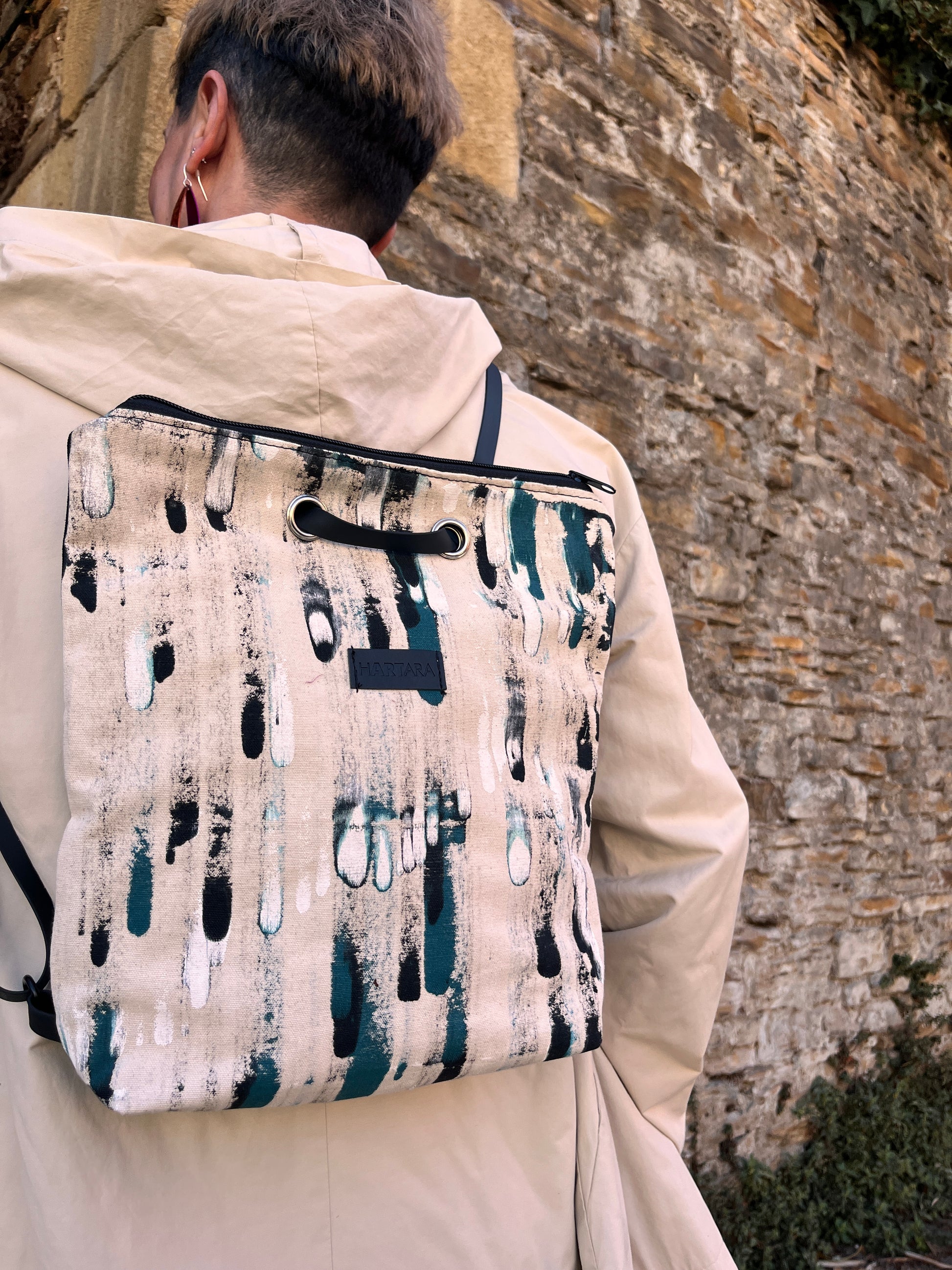 ¿bolso o mochila? Con la ARAS no tienes que elegir. Estilo y versatilidad desde el momento en que te lo pones. Un producto pensado para darte ese confort estiloso y cómodo que necesitas. Además son únicas, con algodones orgánicos pintados a mano, ninguno es igual a otro. Seguro que tus amigas te preguntan por este producto tan versátil.