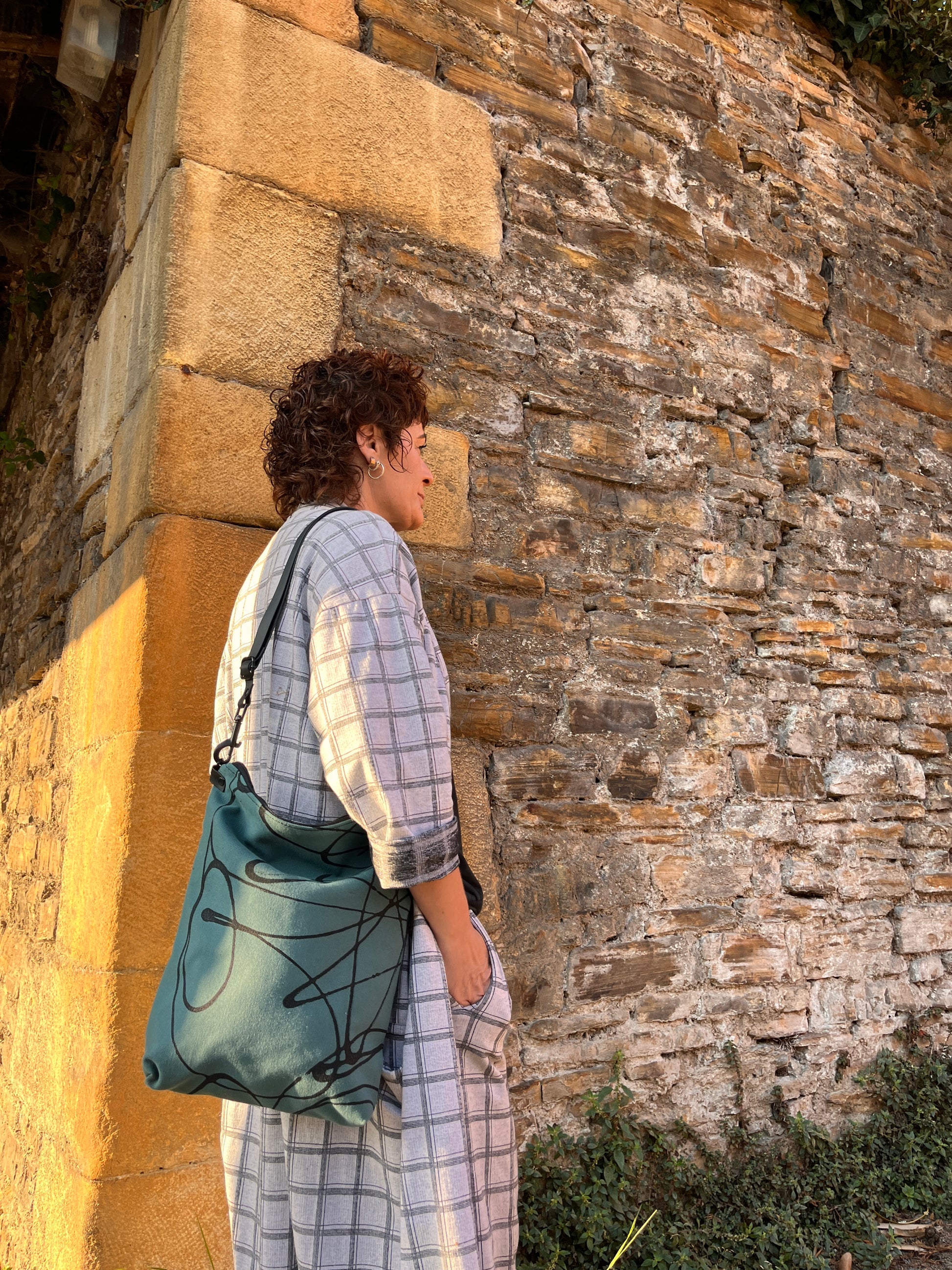 El bolso Sarea es una pasada. Espectacular en lo estético y muy cómodo y versátil para el día a día. Elegante y potente. Fue difícil elegir el color, ya que me encantan las diferentes combinaciones, pero he acertado con el verde: cañero y muy ponible. Una vez más, muy contenta con las creaciones de Jone.