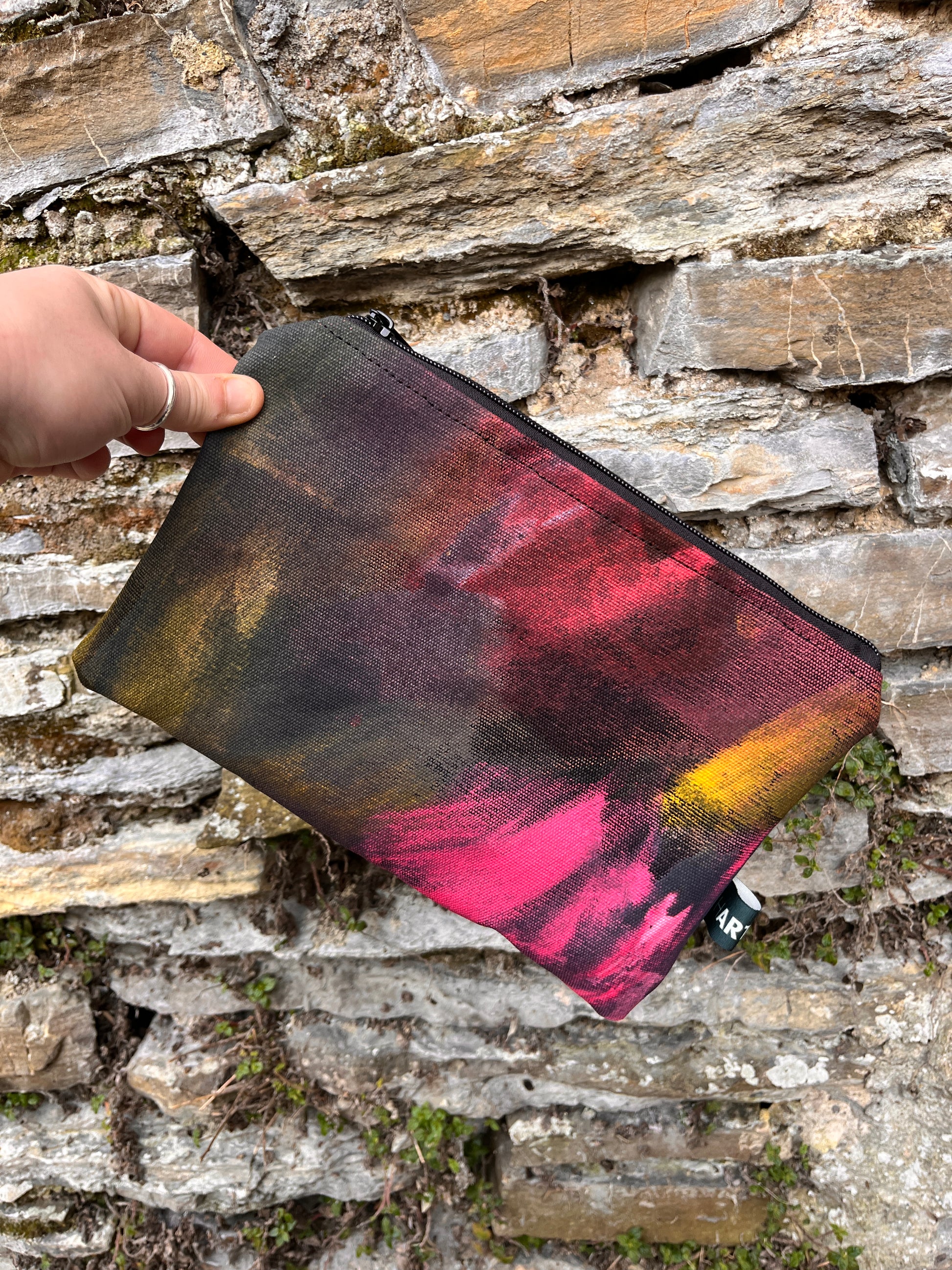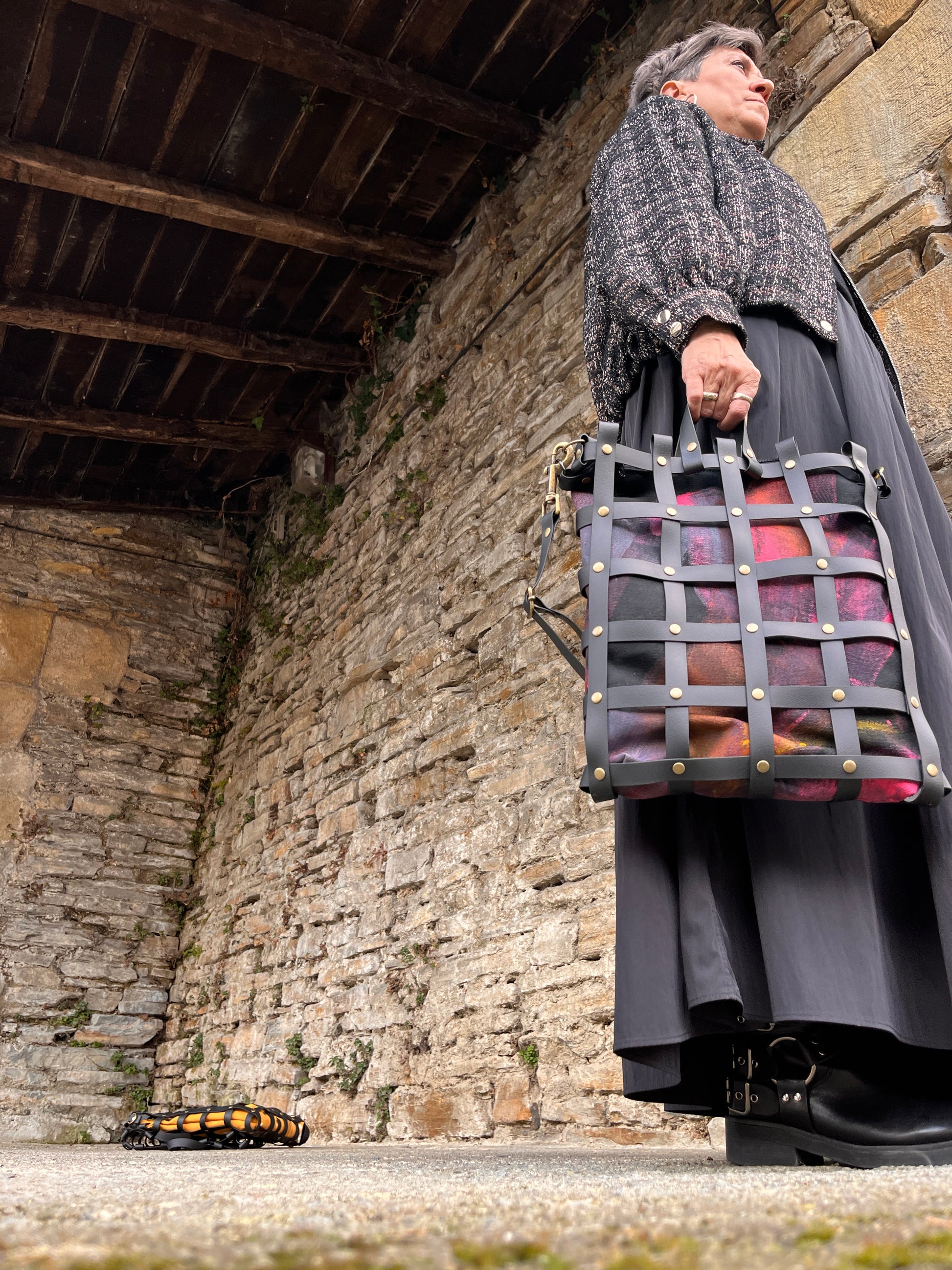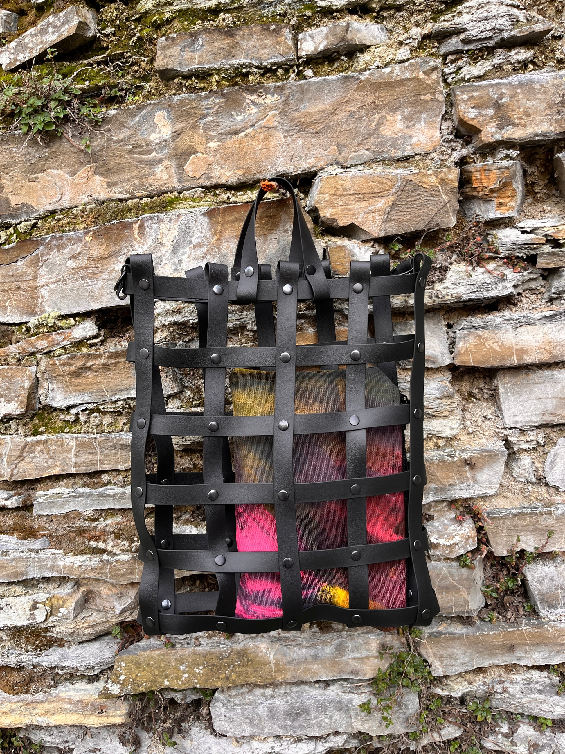 El bolso de tela: está pintado a mano, único, ligero y cómodo. Cada pieza es única y puede variar ligeramente de la imagen que ves. Puedes llevarlo dentro o fuera de la carcasa. En el interior tiene un neceser extraible sujeto con dos imanes.