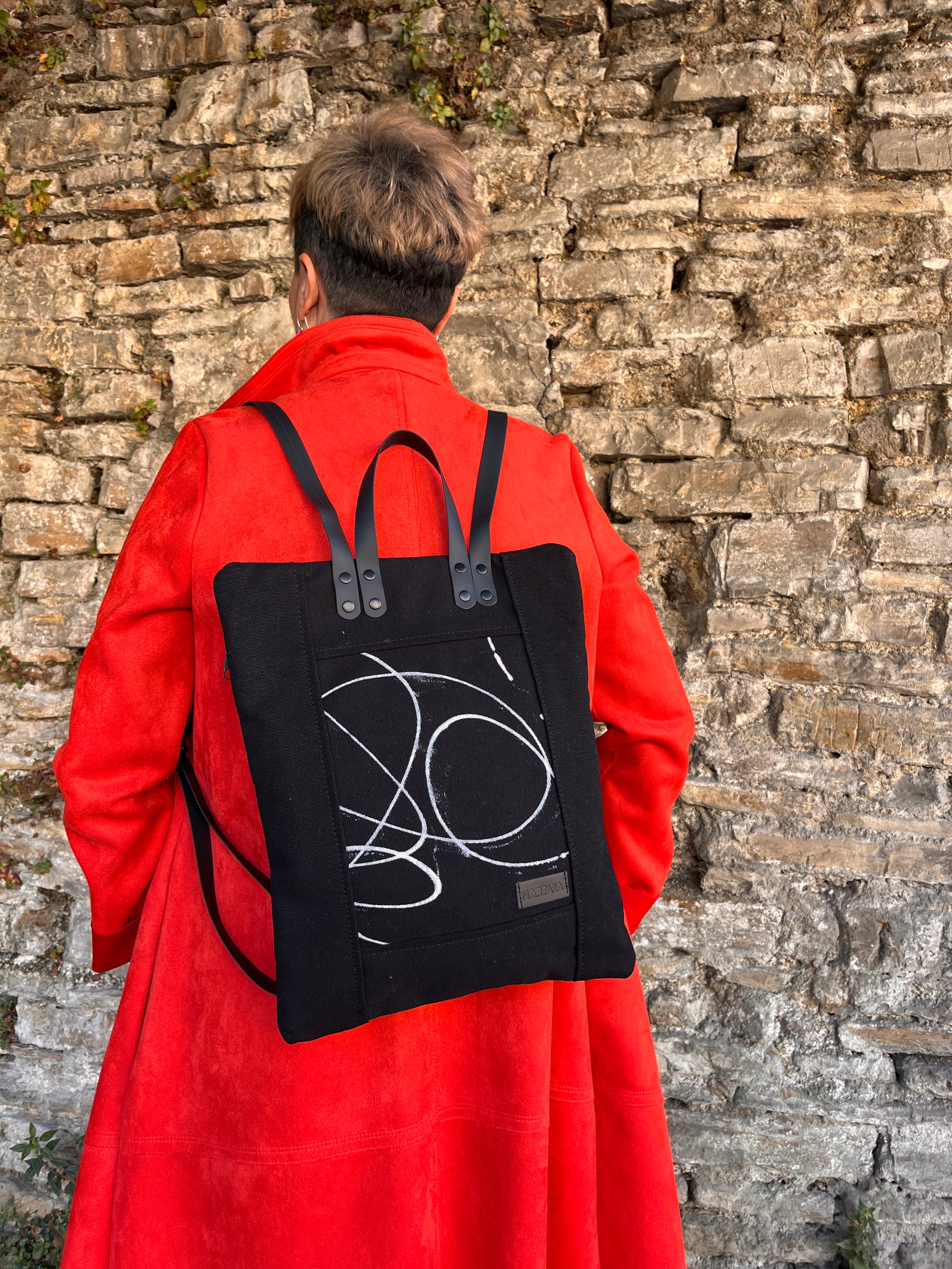 Una mochila que no pasa desapercibida, su comodidad y su estética limpia y original lo dicen todo. Es como llevar un cuadro a la espalda. Porque la pintura no debería de estar solo para colgarla en las paredes de los museos, debería ser para vivirla. Notarás desde el minuto cero que te sientes ligera, cómoda y sin perder tu estilo.