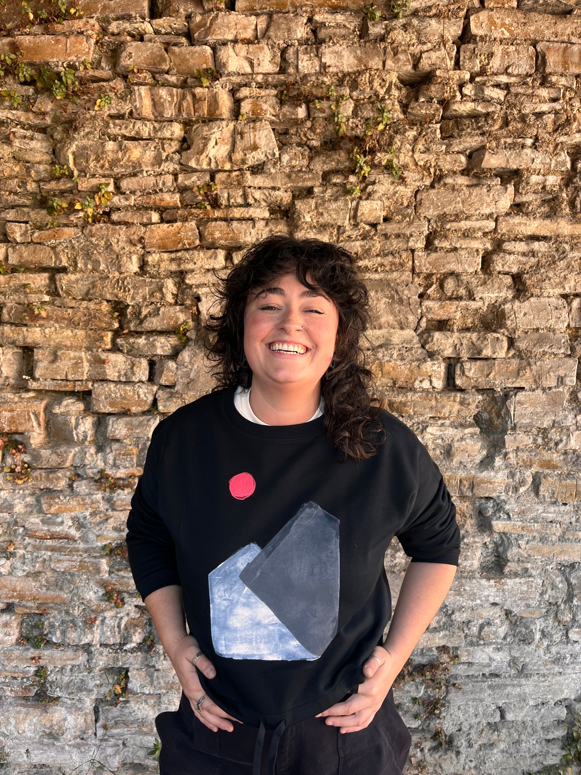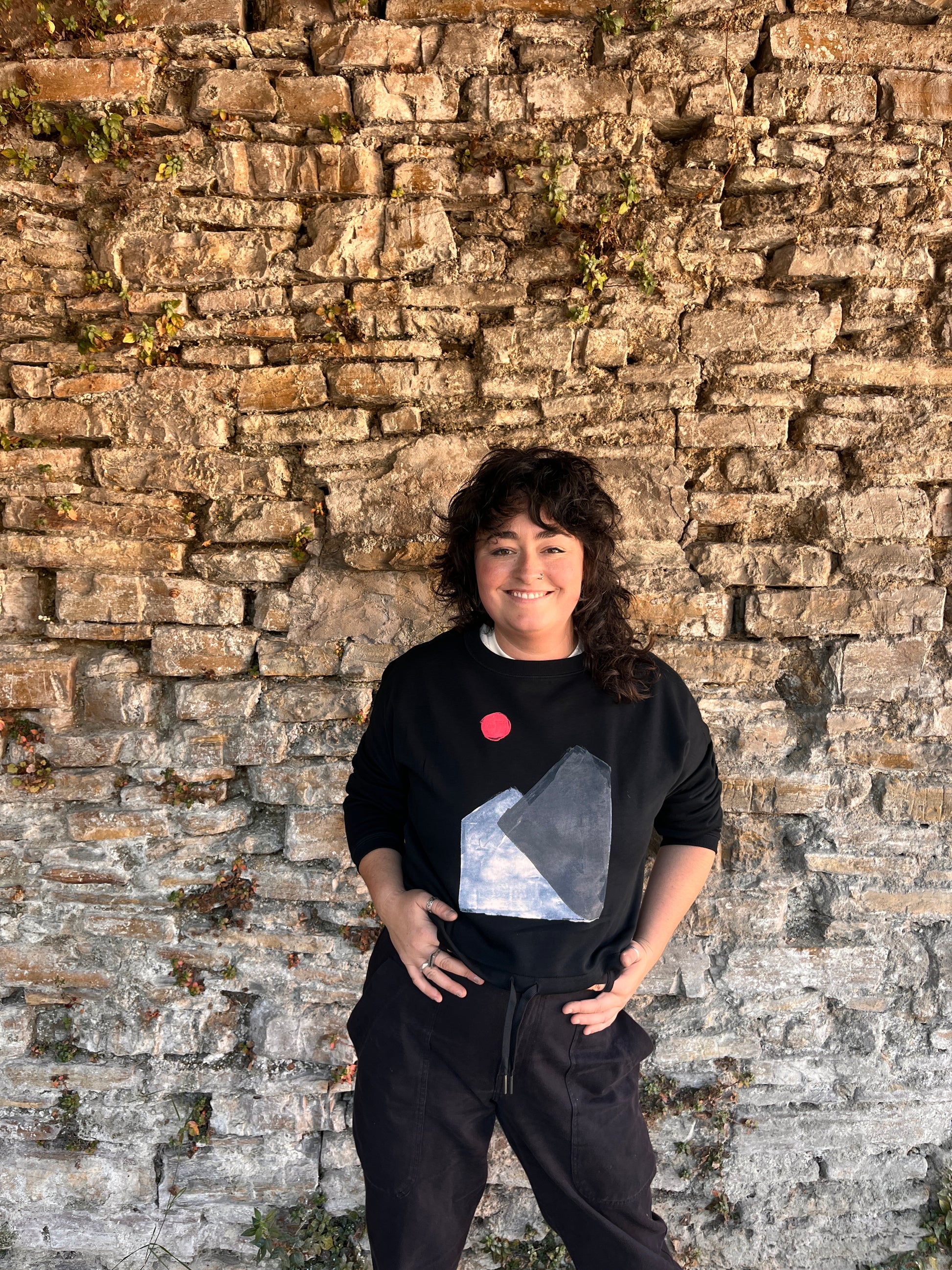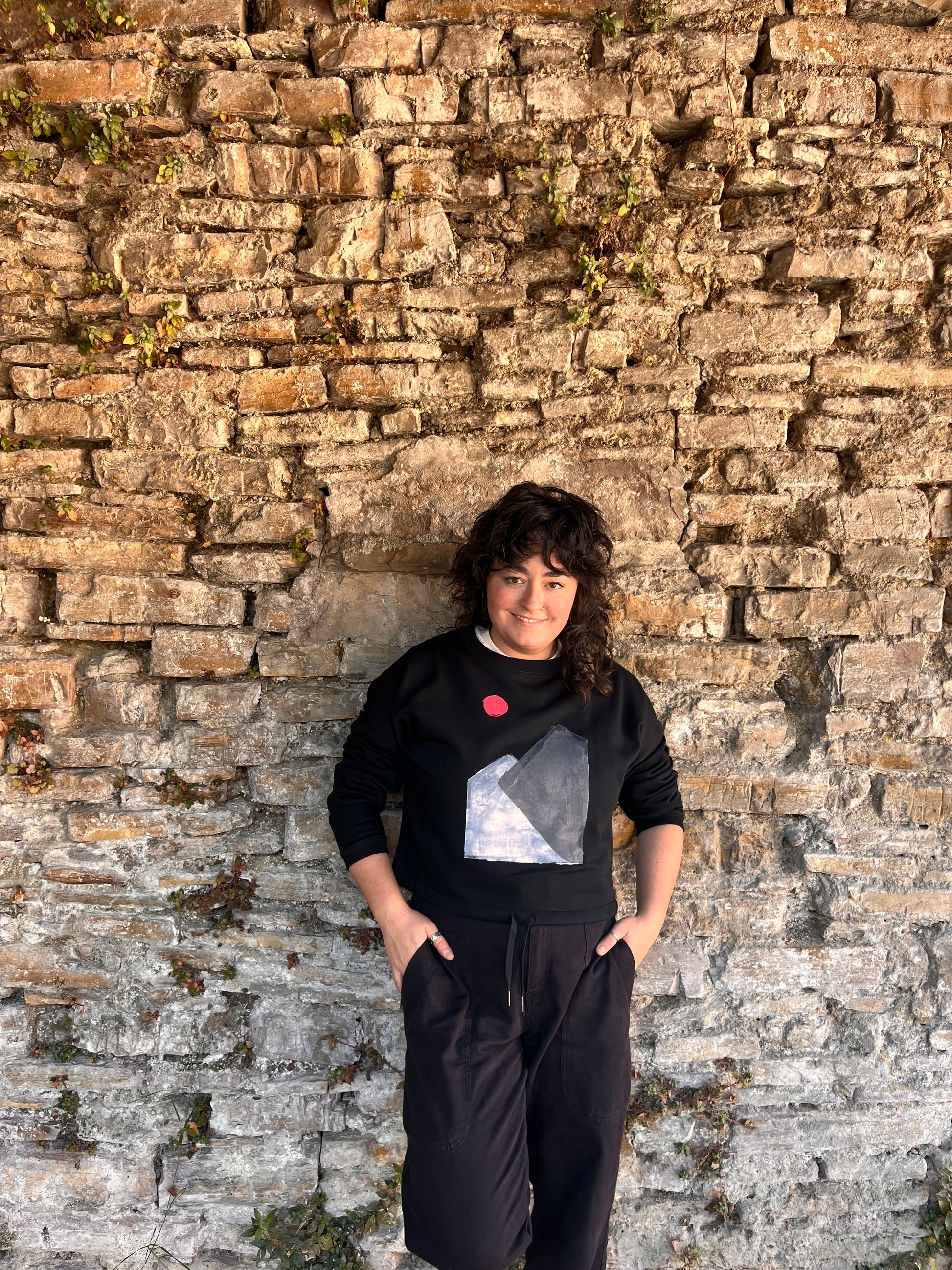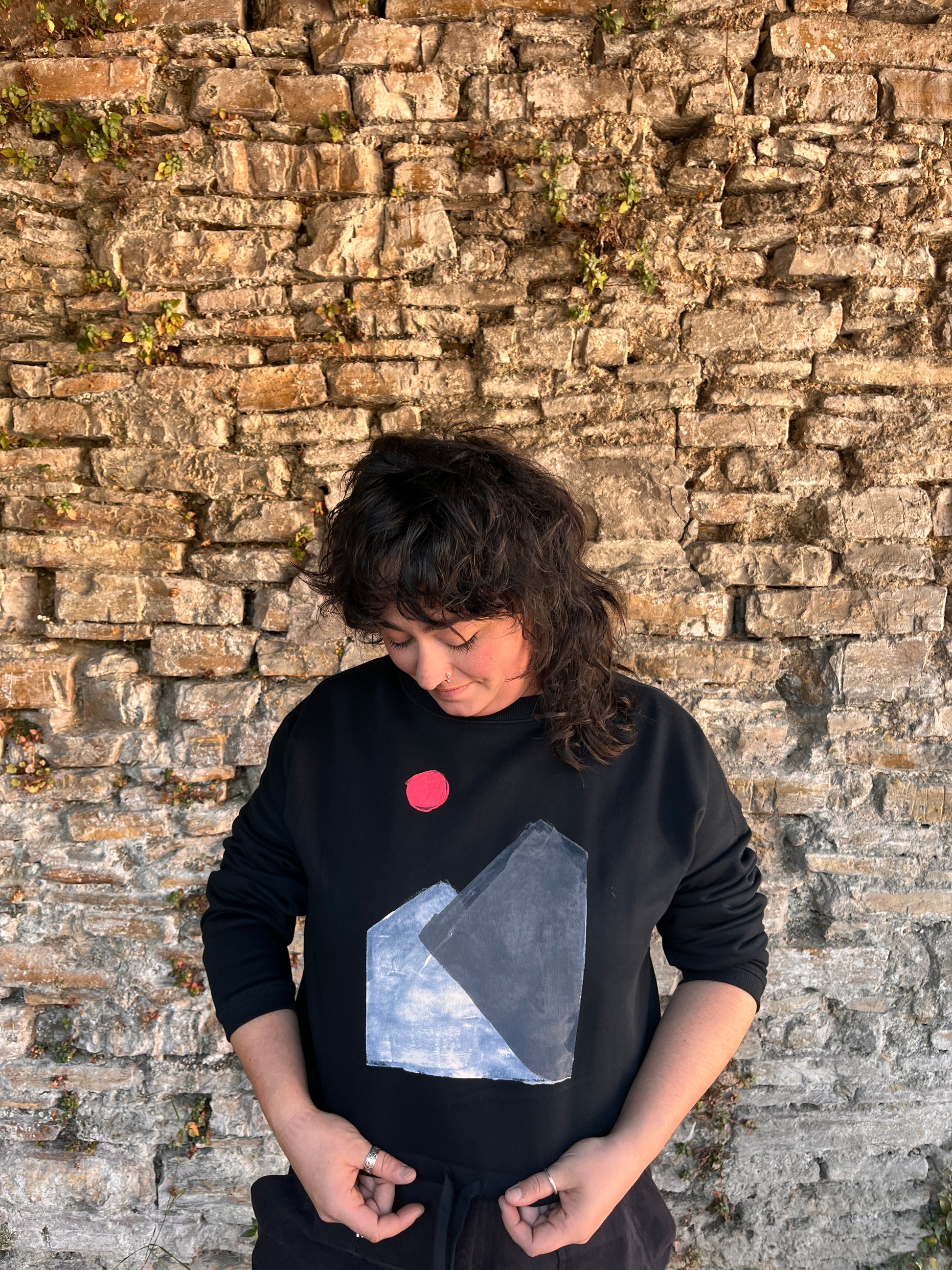 Esta sudadera corta y de corte amplio (crop oversize) combina comodidad y estilo en una silueta desenfadada que realza cualquier look. Cada una está pintada a mano con mimo, lo que la convierte en una pieza única e irrepetible.